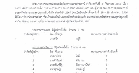 ประกาศ รายชื่อผู้สมัครเลือกตั้ง ประธานกรรมการ คณะกรรมการดำเนินการ และผู้ตรวจสอบกิจการของสหกรณ์ออมทรัพย์สาธารณสุขปทุมธานี จำกัด ประจำปี 2567
