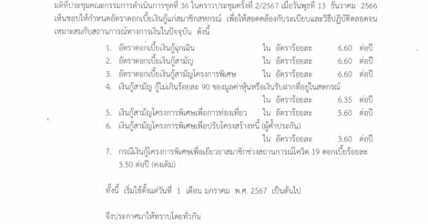 ประกาศ อัตราดอกเบี้ยเงินกู้แก่สมาชิกสหกรณ์