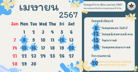 ประชาสัมพันธ์ วันหยุดทำการสหกรณ์เดือน เมษายน 2567