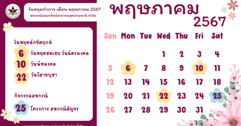 ประชาสัมพันธ์ วันหยุดทำการเดือน พฤษภาคม 2567
