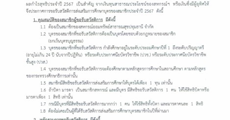 ประกาศ เรื่อง การรับสวัสดิการส่งเสริมการศึกษาบุตรสมาชิก ประจำปี 2567