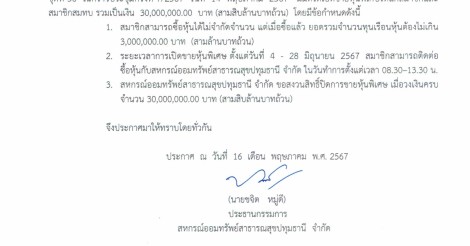 ประกาศ เรื่อง เปิดขายหุ้นพิเศษ