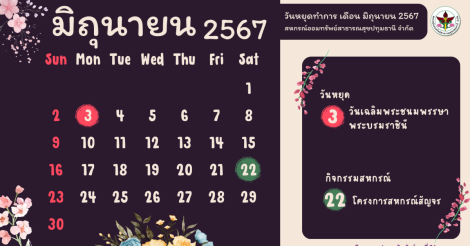 ประชาสัมพันธ์ วันหยุดทำการเดือน มิถุนายน 2567