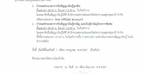 ประกาศ การกำหนดเวลาการทำธุรกรรมด้านเงินกู้