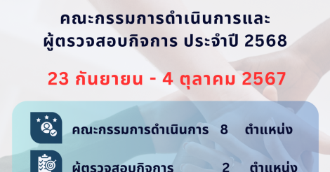 ประกาศ การรับสมัคร และเลือกตั้ง คณะกรรมการดำเนินการ และผู้ตรวจสอบกิจการ สหกรณ์ออมทรัพย์สาธารณสุขปทุมธานี จำกัด ประจำปี 2568