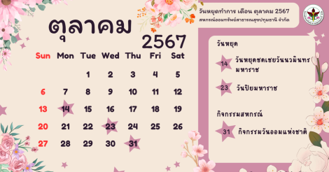 ประกาศ วันหยุดทำการสหกรณ์เดือน ตุลาคม 2567