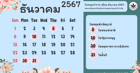 ประชาสัมพันธ์ วันหยุดทำการสหกรณ์ฯ เดือน ธันวาคม 567