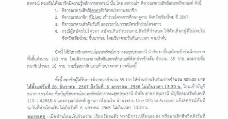 ประกาศ รายชื่อผู้ได้รับการพิจารณาเข้าร่วมโครงการ วิถีชีวิตเศรษฐกิจพอเพียง ประจำปี 2568 วันที่ 23 - 26 มกราคม 2568