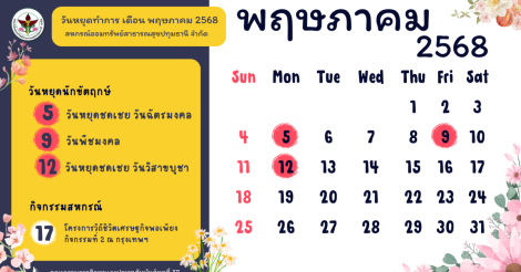 ประชาสัมพันธ์ วันหยุดทำการเดือน พฤษภาคม 2568