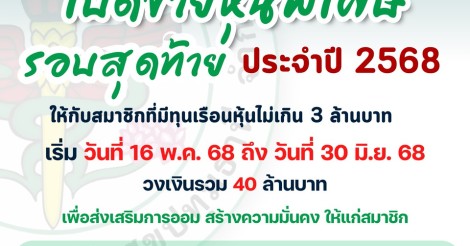 ประกาศ เปิดขายหุ้นพิเศษ วันที่ 16 พฤษภาคม 2568 - 30 มิถุนายน 2568
