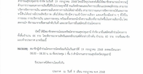 ประกาศ รายชื่อผู้ได้รับการพิจารณาเข้าร่วมโครงการ Knowledge Sharing 68 ในวันที่ 19 กรกฎาคม 2568