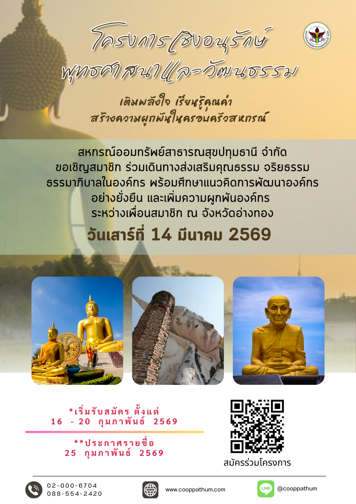 ประชาสัมพันธ์ โครงการ เชิงอนุรักษ์พุทธศาสนาและวัฒนธรรม One Day Trip จ.อ่างทอง
