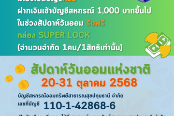 ประชาสัมพันธ์ กิจกรรม สัปดาห์วันออม วันที่ 20 - 31 ตุลาคม 2568